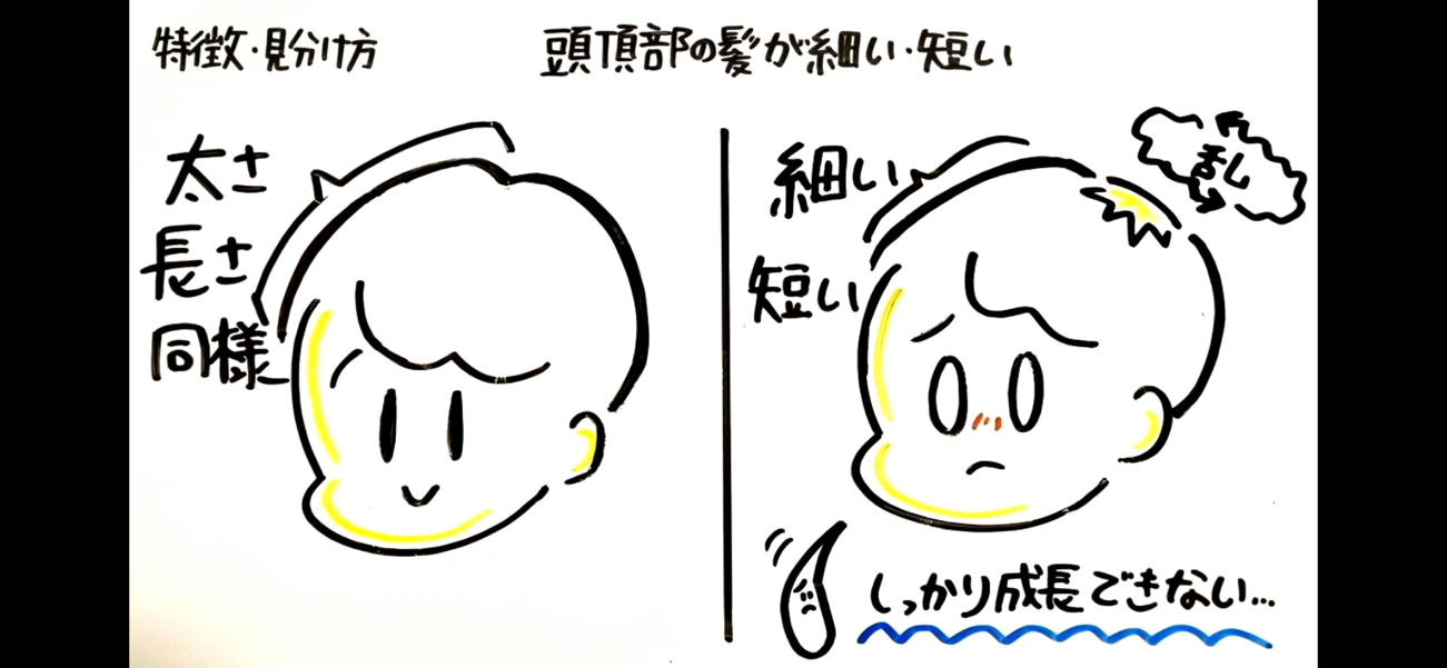 | 頭頂部の地肌が透けて見えるようになってきた | |
